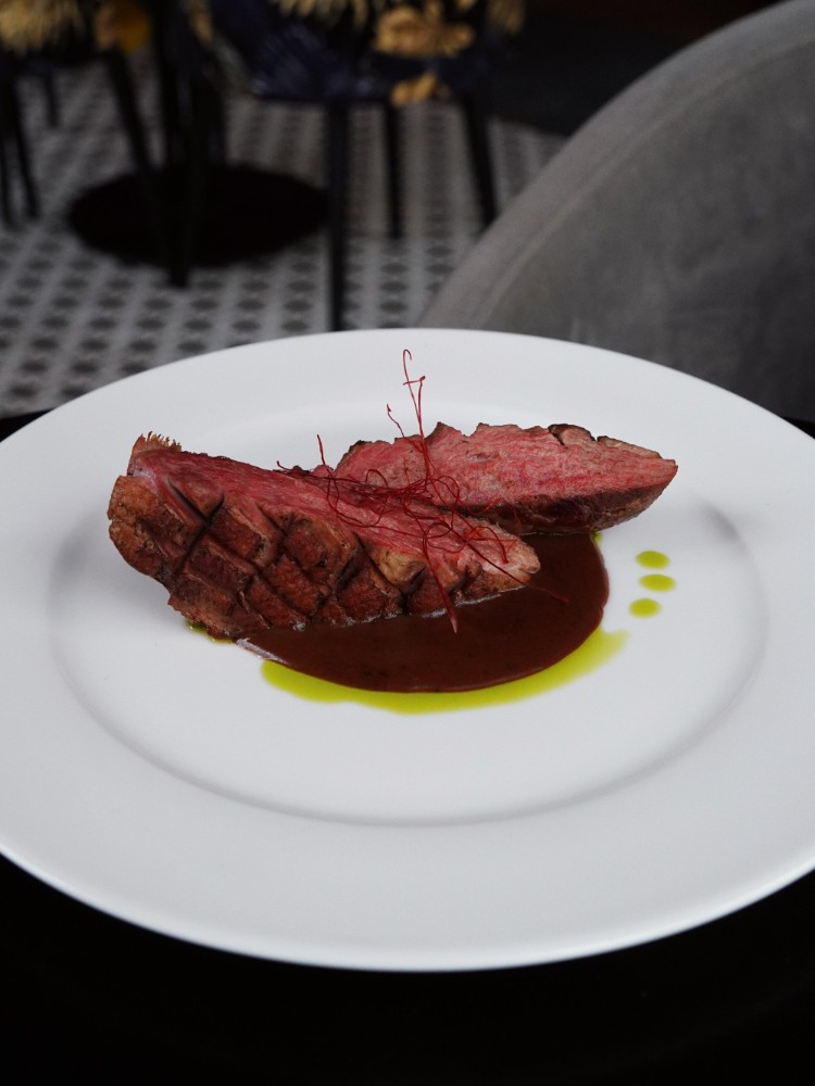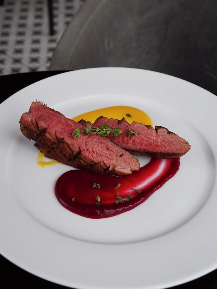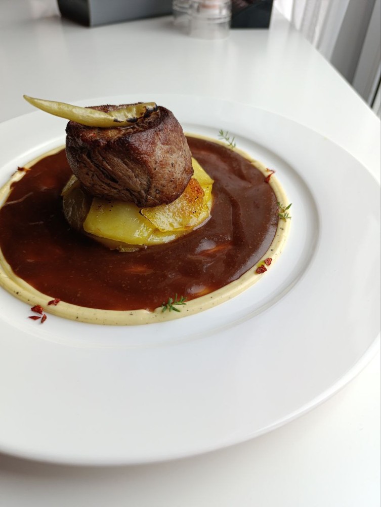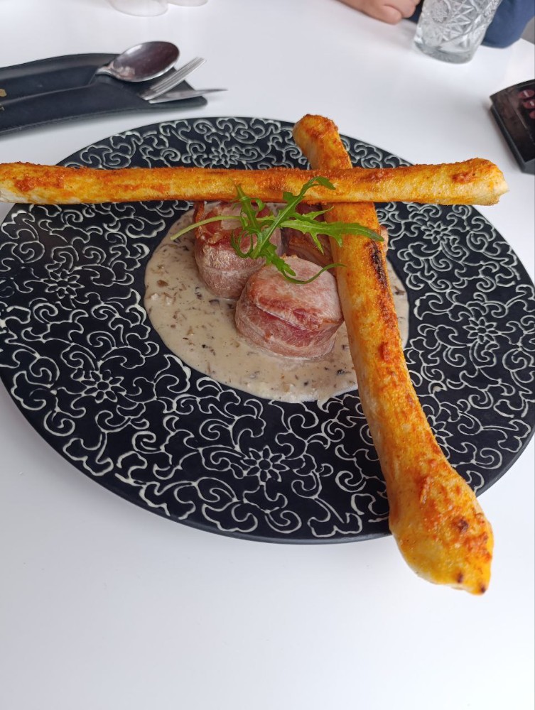 - Свинний рулет сувідований в соусі та обпалений при подачі